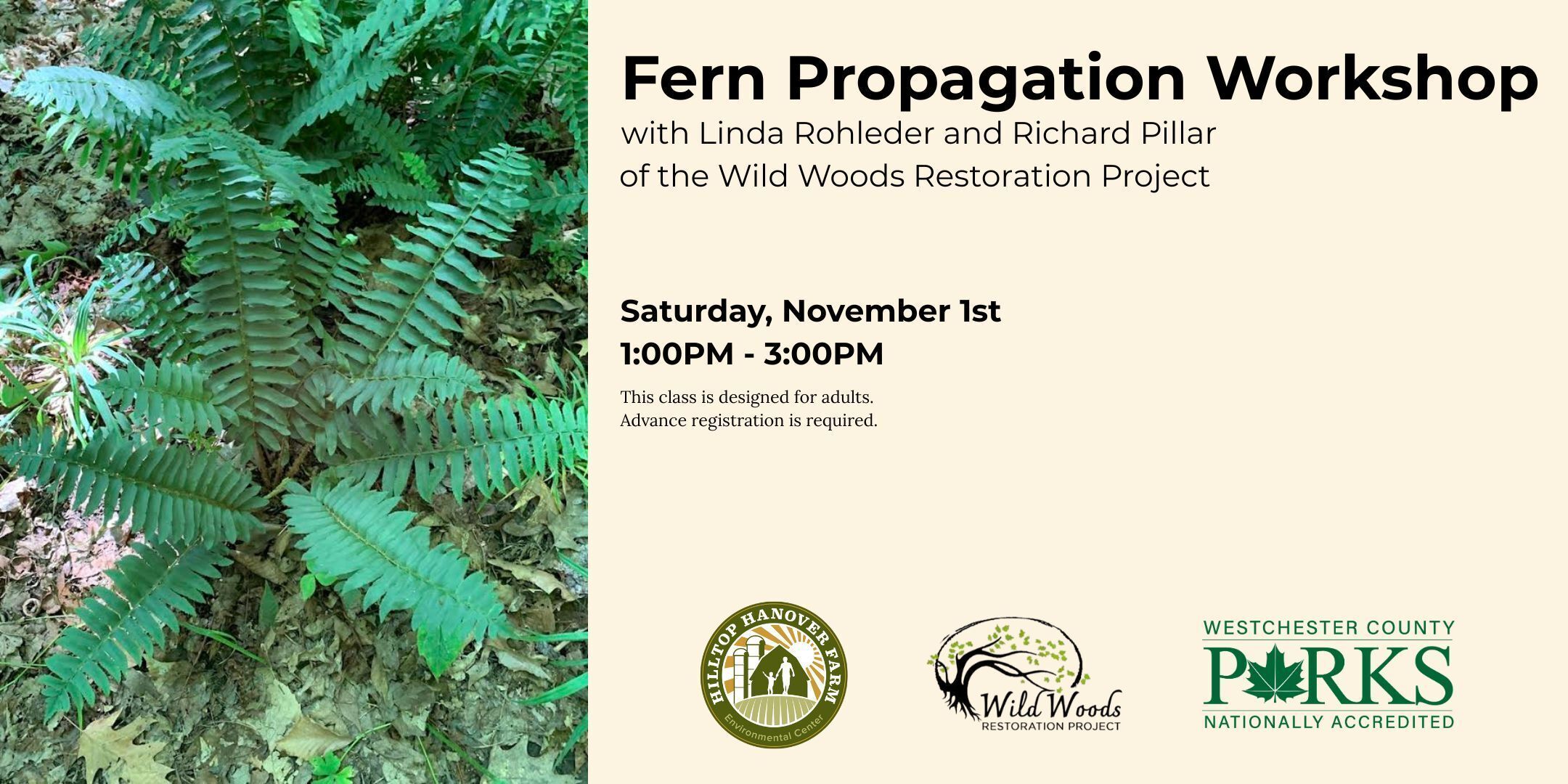 Take your native plant growing skills to the next level. In this hands-on workshop, learn how to grow native ferns from spores with Wild Woods Restoration Project.